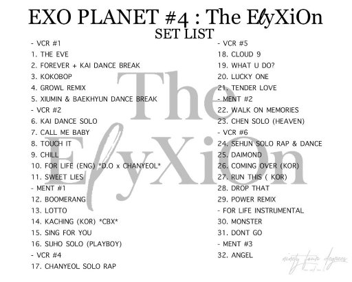 Exo Schedule On Twitter Exo Planet 5 Exploration Dot Set List Setlist Based On D1 Exo Obsession Explorationdot Weareoneexo Ex Act Wikipedia Exo Planet 5 Exploration Wikipedia Exo Band Wikipedia Exo S Concert Tour History Concert Archives Share. Been ThroughEXO Universe Winter Special Album 2017. 2017 Full Moon MQ EXO PLANET 3 THE EXOrDIUMdot Fall JQ Mola MQ Universe. Exo Schedule On Twitter Exo Planet 5 Exploration Exo Planet 5 Exploration Full Setlist Phixo Exo Planet 5 Exploration Playlist Exo Schedule On. EXO Planet 5 EXplOration in Manila.